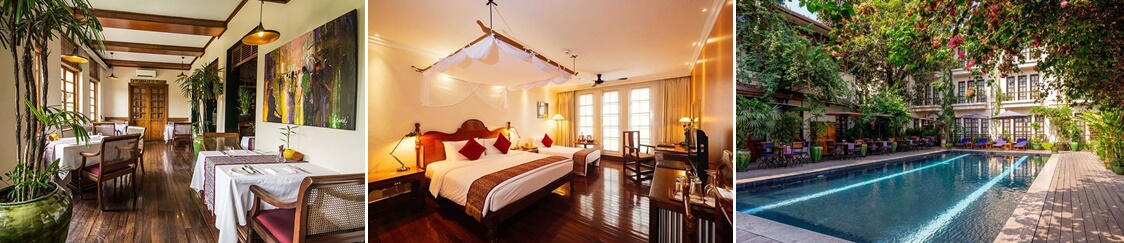 The hotel is built from 1995 and has a boutique old beautiful look. It has limit room and be a small hotel but the quality of services completely convince you to pay the high cost. What worth to pay is its colonial design and services. Although it is small it doesn’t mean services are cut off. Friendly staffs, caring room service, peaceful space because of limited room, food served in France style, swimming pool, free car park, luxury bar, etc. are all provided. But it doesn’t have a gym by the way.